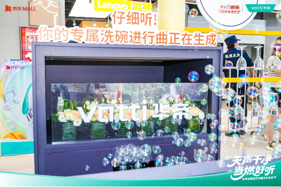 洗碗机・泡沫爵士俱乐部则以编钟造型陈列碗碟的艺术装置内置泡泡机,用户与装置合拍解锁“洁净认证 pose”,同步聆听《慢慢喜欢你》等爵士民谣——歌曲节奏与洗碗机清洁频率的同频设计,让“全域精洗”卖点转化为听觉联想。